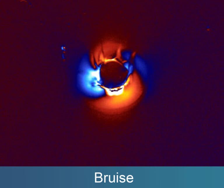ヒーターはオフ。画像をしわが横切っています。GFP1600FPIで測った応力画像。